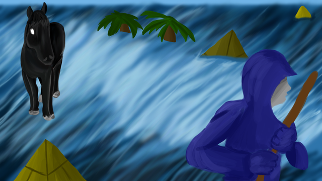 Hinto is proficient in using both a staff and a sword. His staff is bound to him, helping him concentrate his mana for spells. If without sword, he will use the top part to bash some heads in and the bottom part to draw his sigils and circles.