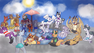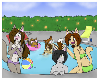 I drew every oc who, at the time of posting, is at the pool party. I took some liberties wih their clothes, so i apologize if it's not exactly waht u were imaginingΒ