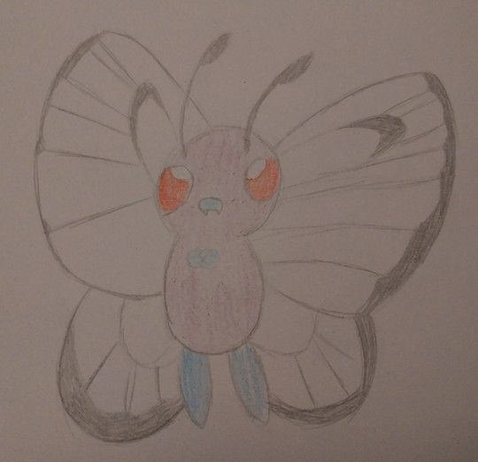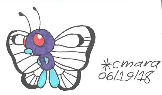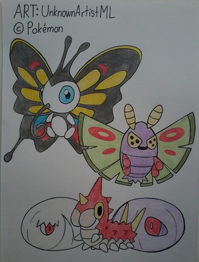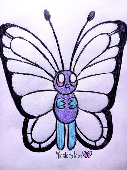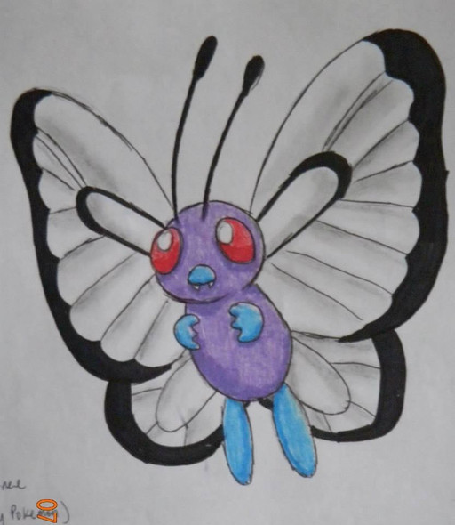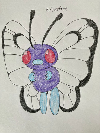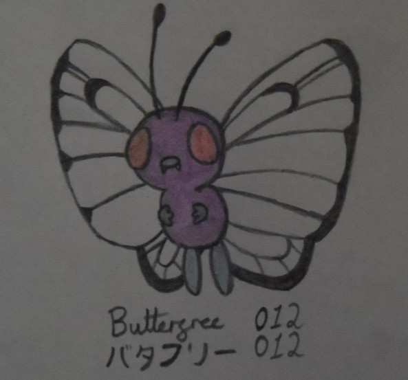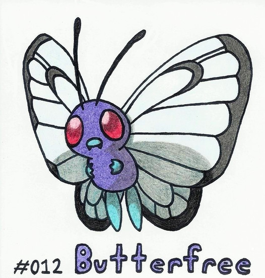 Butterfree, The Butterfly Pokémon. (Bug/Flying)Evolved from Metapod, this Pokémon loves to collect honey and take it to their nest. The wings that are covered with poisonous dust can repel water, which would allow it to fly during heavy rains.