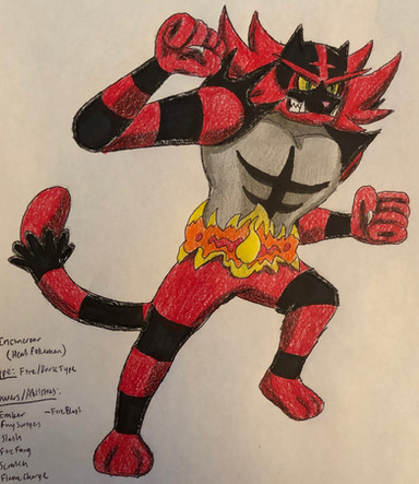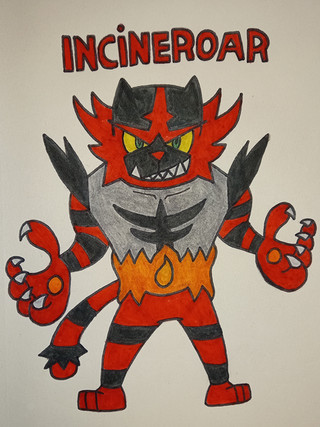 Incineroar, The Heel Pokémon (Fire/Dark)The final evolution of Litten, this Pokémon excels at violent, no-holds-barred battles. Despite its aggressive nature, it shows internal happiness when admired by children and small Pokémon. It's signature move is Darkest Lariat.