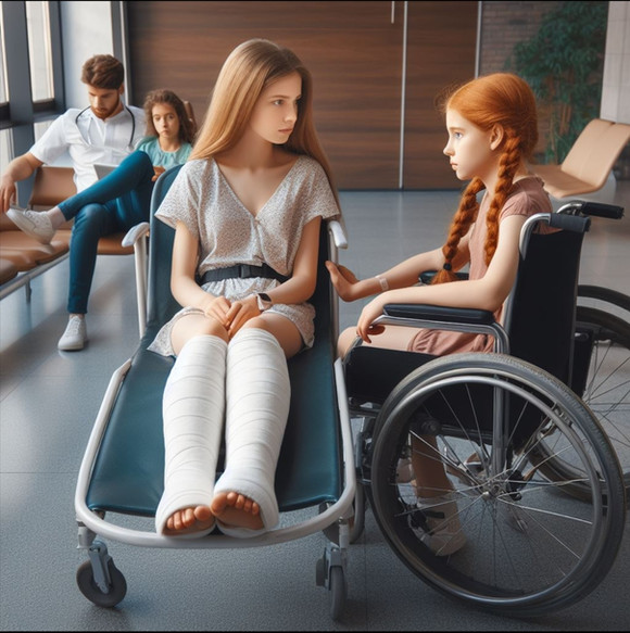Emma broke both her feet and sprained her hands in a climbing accidentIt will take about 6 months to recover.