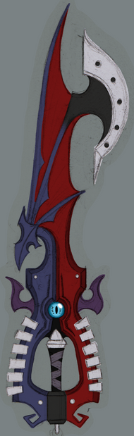 A Keyblade based off Kamen Rider Kiva, the title character of the 2008 incarnation of the Kamen Rider series.