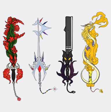 Awesome work! Id prolly use either Jaunes or Pyrrhas keyblades(Or both )