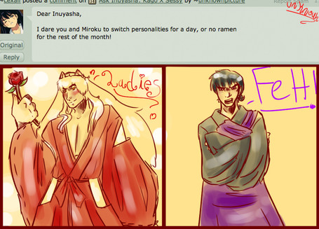 I have a question for Half,Human, and Demon Inuyasha....I know its been done but give me a strait answer please do u three all together love Kagome.