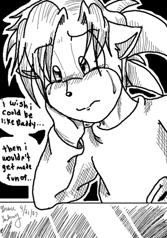 It chandes the way i draw him.. In this pic he is about 6-8 But usually i draw him as a 14 year old boy C: