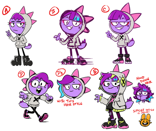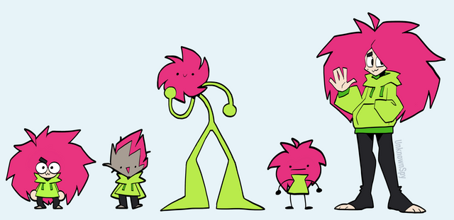 The many forms-I don't mind how you draw her as long as she got big floofy pink hair and preferably a green hoodie.