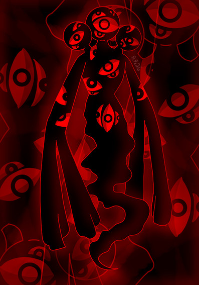 Seriously though, this looks great; the eyes are unsettling to say the least and between the bleak color palette and uncanny valley appearance, the actual guy looks very intimidating. The eye motif reminds me a lot of Bill Cipher, which is pretty neat, though I'm sure it was unintentional.