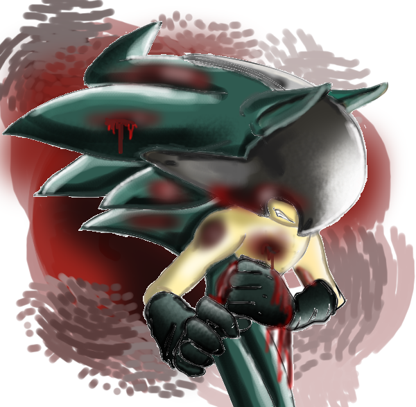 Shinteku the hedgehog. Has he killed somebody? Is he angry or...... Crying? If he killed somebody then who?This picture took me 4 hours to draw. I really like how the blood came out.