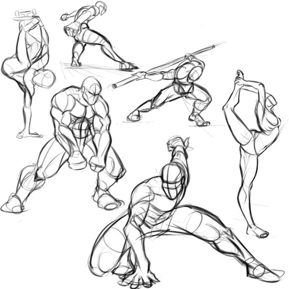 Ooo! I like the way you shaded some of these hatching, it works really well with the theme of movement and gives the muscles a lot more shape! :0