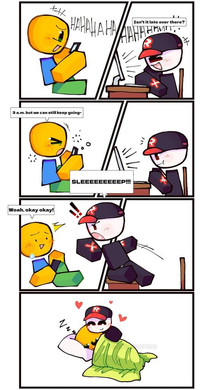 Cross is bothered by Tilted's sleep talking so he decides to comfort him.Cross belongs to DebbieStellar