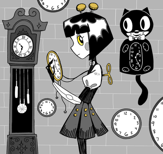 The clock lady looks like she's bout to yeet and delete some bad guys or sth...
