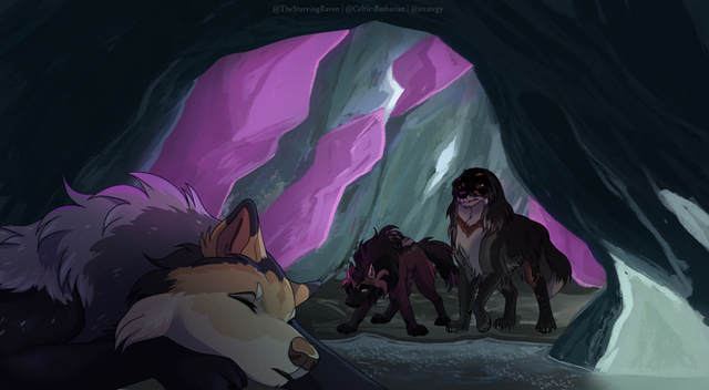 Pollux is healing up under the watchful eye of Jorann and Inkeri <3 And he's doing a more respectful side-eye this time, after all, these wolves are strange. What could he possibly learn when they aren't paying attention.