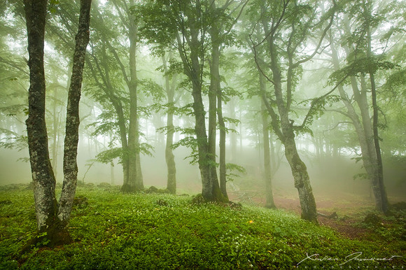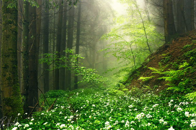 #blue #flowers #fog #forest #green #leaves #magical #nature #plants #spring #trees #unkopierbar