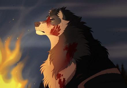 Story: Timbermoon became exhiled and blinded, he started a fire to take vengeance against his pack. Finished on April 9 2023