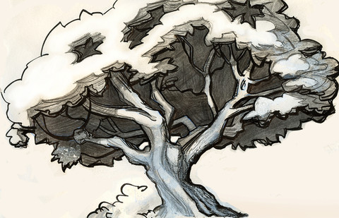 The shadows and the shading are perfect, the bark looks textured and weathered. And the whole composition has this great sense of movement, like the breeze has just come by and taken up some of the leaves with it. It's subtle, but you captured it so well.