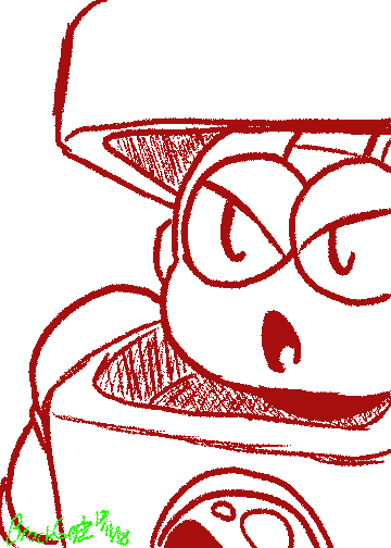 Kernel Man is much like his fellow unit Bumper Man, designed for a failed amusement park and left more or less abandoned ever since. Kernel Man doesn't feel anger or resentment so much as ennui. He was surrounded by plenty of regular popcorn machines, and there was really no distinct need for him. He was an expensive purchase, a status symbol, and after the park's closure he feels a great sense of cosmic meaninglessness.