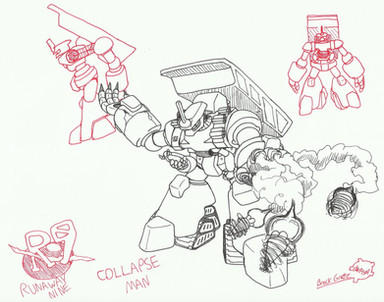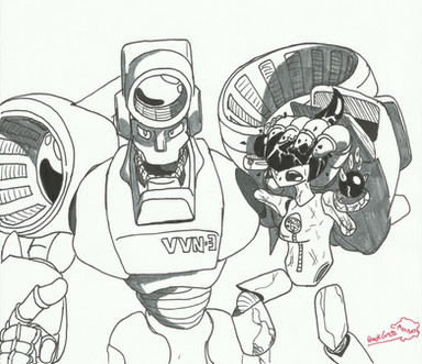 The joke is that the two of them pose while speaking, and it always gets to the point that one of them snaps their back or breaks a limb or two because they tried to a pose that was too extreme. Their anatomy is pretty abstract as it stands because of their mechanical nature, but I would agree that there is room for improvement. (I mainly just drew this to get the designs out of the way in 20 minutes time, so it's not great.)