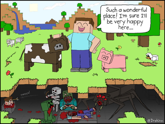 I played Minecraft once.In a Beautiful world whereΒ I made my house:FORTBUSCUS.I went to sleep.The next morning A COW SPAWNED ON MY CROPS!