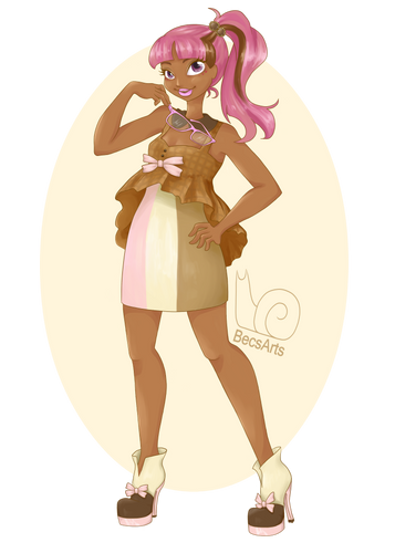 So, I got really bored earlier today. And out popped this. I don't even know what's up with that eye. And I'm really not going to think about it too hard.I was pretty much practicing using compootur graffix. Which I'm admittedly not that great at. I'm pretty sure it turned into Princess Sophie from Fushigiboshi no Futagohime. But I'm not really sure. Because that dress is totally different. And boobs. I don't know who she belongs to either. ._.; Oh doodling, u so crazy.