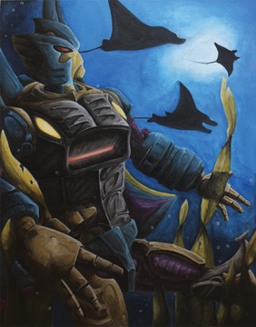 Still a work in progress. I still have a lot of detail to add in, i've just run out of time to work on this particular project for the moment.The mech is from an old kids show called Hypernauts.