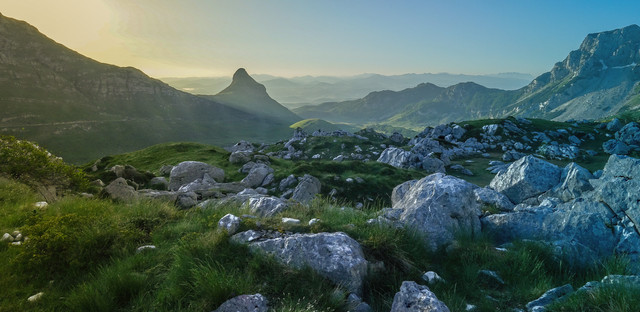 the background is already interesting but that rock formation in the foreground makes it even better. very cool mountains.