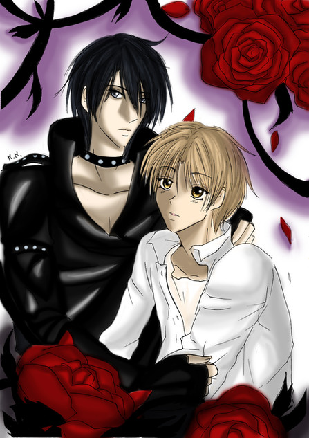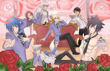 I like how you have all of them holding their "signature roses", as someone else said earlier. I also like how you switched Tamaki's and Haruhi's rose so that they're holding each other's...*wink*