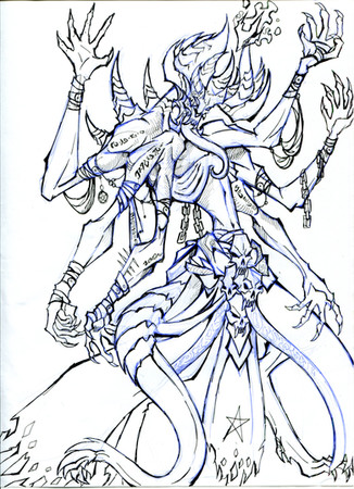 An ancient life shaping entity in my setting. He is a volatile tempered, anti-social and thoroughly self-centered deific being.Skelmis is a shapeshifter in the truest sense, having no true form. He chooses to identify as male on the rare occasion that somebody inquires about his gender and he isn't busy vivisecting, eviscerating or otherwise "harvesting" materials for his art.