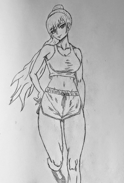 #originalcharacter #pencildrawing #anime #amazonwoman #animegirl #drawing #longlegs #ponytail #sketching #tallwoman #muscularwoman #practicedrawing #longbangs #mangaanimegirl #muscularlegs #yogapants #rippedabs