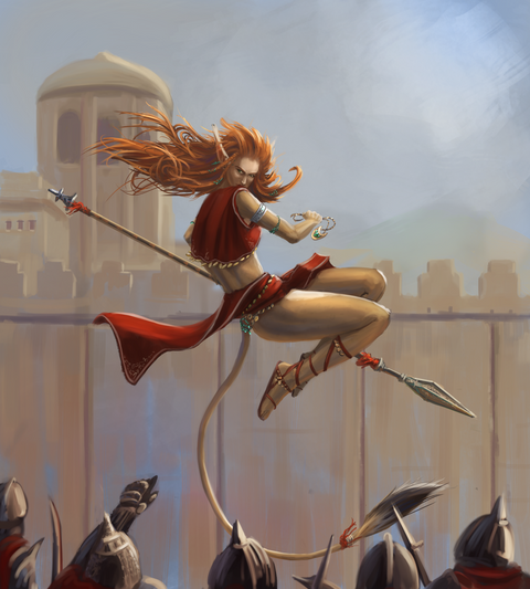 #anthro #clouds #crocodile #fantasy #green #swamp #digitalpainting #originalcharacter #redhairedgirl #warriorgirl #clipstudiopaint