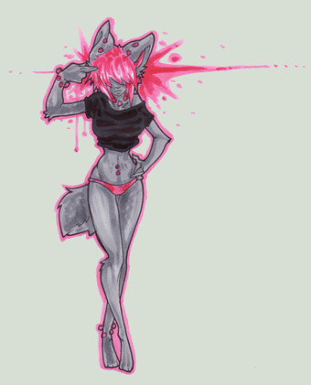 That said, this is still great. The bloody outline's always a neato effect, and I love the shading on her tail.