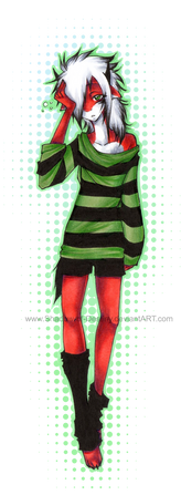 1 - I LOVE the pose! It's good to see you trying your hand at a new thing and this pose really pops so much more than your regular stuff - not that your ordinary poses aren't good, they are, it's just it's good to see something new and different like this. Since you've obviously already come such a long way with working with markers and with drawing Anthro, maybe your poses would be the next goal, the next thing for you to improve?