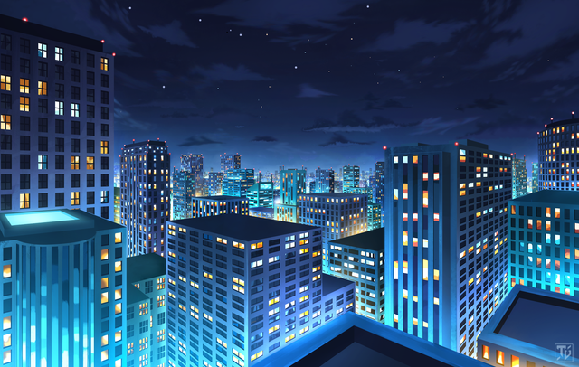 #cityscape #digitalart #illustration #nightcity #park #environmentpainting #nighttime