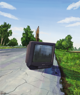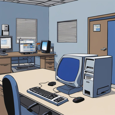 Digital painting based in a ficticious and devoid of people computer room in the late 90's.