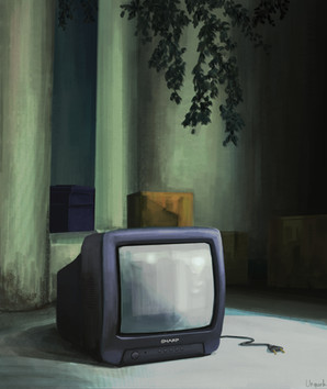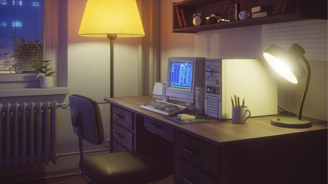 #1990 #90s #computerroom #digitalart #digitalpainting #eerie #illustration #macintosh #room #scenery #thinkpad #retrocomputers #empty
