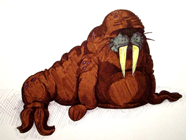 Specimens from the Unfortunate Carousel have turned up in numerous collections in the following centuries, including this very fine white walrus figure, in the private collection of the Marquis of Widdlemark.