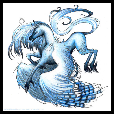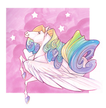 Really wonderful colors. Love that "pearl"-shine on the pegasus. (And.. I'm a sucker for blue tones..)