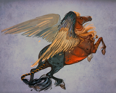 This cheery pastel fellow was a logo design for my local UPS store, Pegasus Postal. They waited way too long for it, particularly since my computer crashed JUST as I was putting the last highlights on the wings, corrupted the file, and I had to repaint the bloody thing in a single deranged night. But anyway, one of my random freelance assignments, which I thought was cute enough to post here.The background color, alas, I had no control over--my own tendency as a painter would be to put clouds or something back there, but since this was a decal on a gunmetal green truck, it had to be both flat and that shade, and compositionally fit that size space as closely as possible. But you work with what you got.