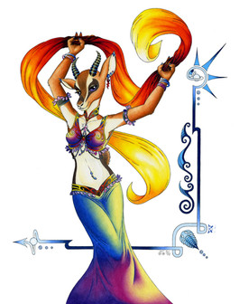 Too cute for words. ^^ Very nice coloring style and I love the back story. Bellydancing for the win!