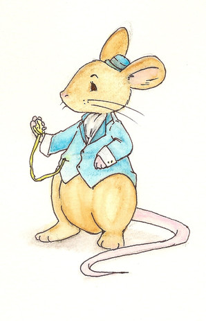 A very tiny piece, at 3.5 x 5, of a snappily dressed bunny. With a pocketwatch! Because ever since Alice, rabbits are associated with pocketwatches.Many of them find this an offensive stereotype, pointing out that they prefer a good digital wristwatch when they require a timepiece at all, others arguing that they don't even bother to carry one because they can look at their cel phone, but this particular bunny has chosen to embrace his heritage for all its worth.