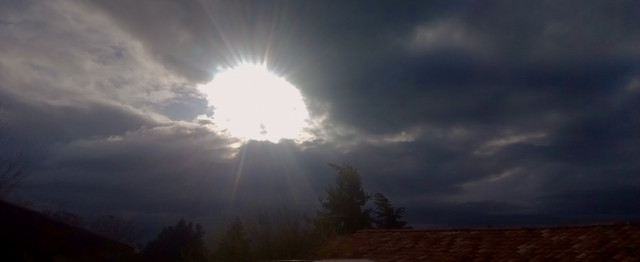Una foto que tomé de forma repentina. La luz a través del huecon en las nubes parece una grieta a través de la que vaya a salir algo. Quizas las huestes de Asgard cargando hacia la batalla.Related content