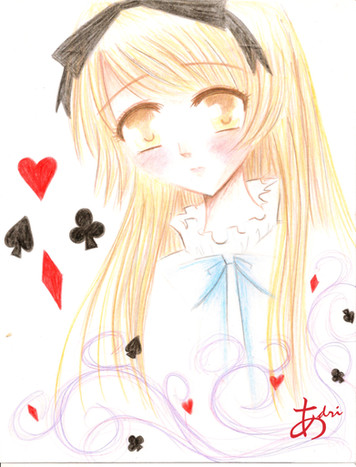 *A* que lindo!! me acuerdo de tu antiguo dibujo de alice.. >A< me encanta porque le pusiste taantos colores *A*