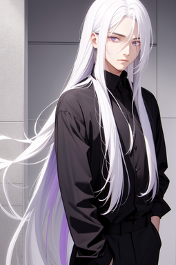 Raynier Darkwood is a enigmatic figure with an intriguing past that has left deep scars on his psyche. With his striking appearance, he often stands out in a crowd. His hair is an ethereal shade of white that cascades down to his shoulders, contrasting sharply with his striking purple eyes that seem to hold a world of secrets. At 188cm, he possesses an imposing height that adds an air of mystery to his presence. His figure is notably skinny, shrouded in body-concealing clothing that veers towards a gothic aesthetic, reflecting his preference for a darker and more enigmatic style.