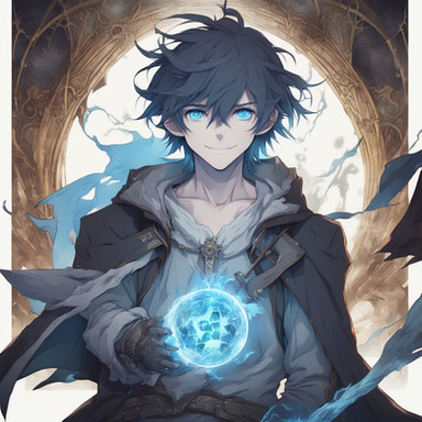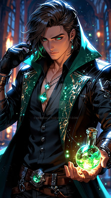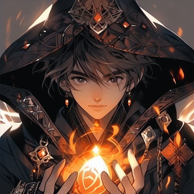 #digitalart #anime #characterdesign #magic #1boy #amber #black #cloak #dark #eyes #fingerless #gloves #glowing #hair #hooded #mysterious #shaggy #treasure #wearing #with