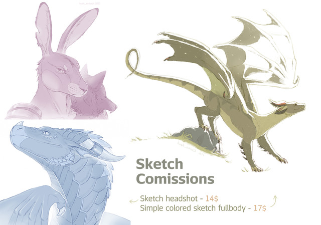 Do keep in mind that half and fullbodies will take quite a bit of time, but I promise I’ll be working on them! I will also be doing only dragons and people, but if I’m interested in something else, I may do it. Pm me so you can let me know what characters you would like me to draw!
