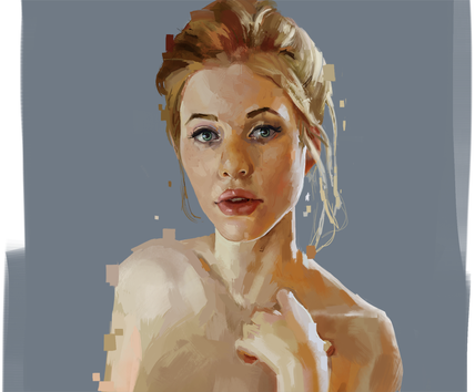 Her face looks very realistic -except for the eyes, which are surrealist but beautiful-.