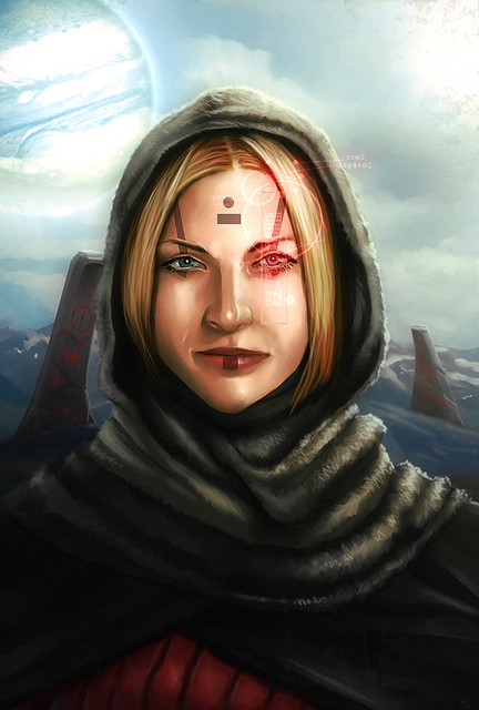 Excellent art work. The character looks very interesting. I like the coloring and her expression. Well done!