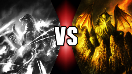 If we go by "expanded universe" Cthulhu, he stomps Godzilla into the pavement. Like...not even a fight. He just makes Godzilla no longer exist with his ludicrously OP spells.