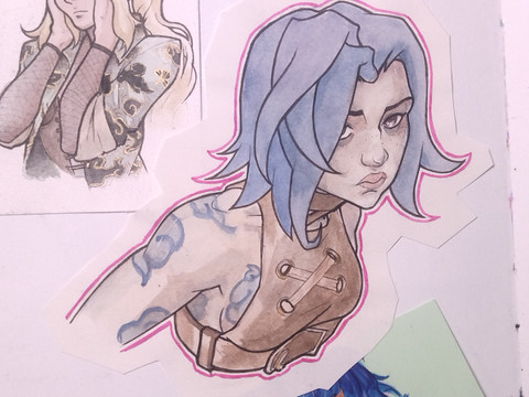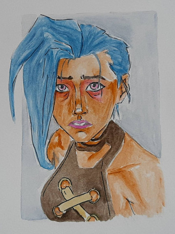 #detailed #details #fanart #illustration #ink #watercolor #watercolour #bluehairedgirl #tattooedgirl #watercolorpainting #leagueoflegends #leagueoflegendsfanart #jinxfanart #jinxleagueoflegends