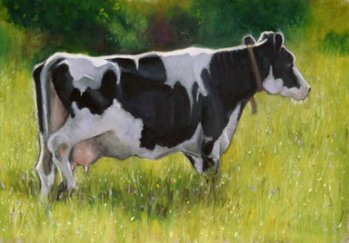 My brother always wanted a painting of a fresian cow in the same dramatic style that I would a big proud racehorse, he had been asking for it for a few years, so finally it was made