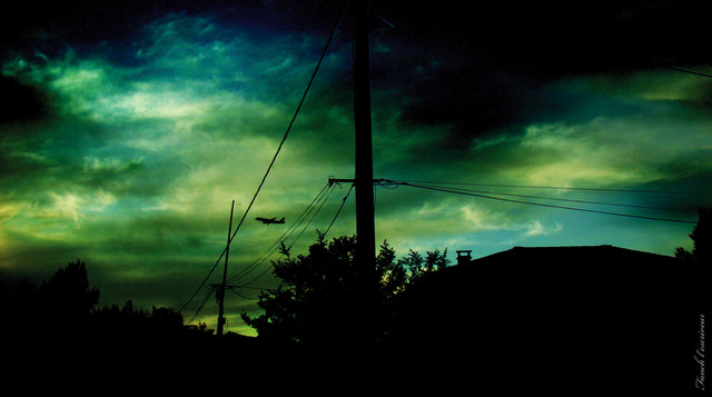 Pushed this thing from an in camera color temperature of 5700 to 12500. Pulled exposure a stop and pushed shadow contrast by 100 in RS to bring out the clouds and create silhouettes of the industrial landscape. Then I applied FM's amazing Velvia Vision plugin in PS. Oh and and crop to take out the highway and cars. Hehh-- I shot this while driving. Had the camera sitting next to me from shooting a location for an NPO so I grabbed it and madly shot out the window without taking my eyes off the road or my hand off the wheel. Hoping that there might be something to play with later on. Well I'd say it worked.